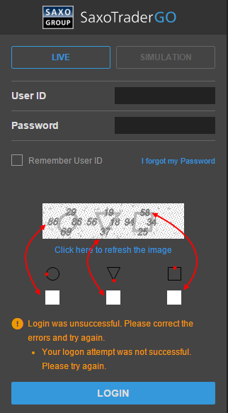 “登录失败。请更正错误,然后重试” 更新 2024年05月11日 07:43 连续5次登录尝试失败(账号或密码错误)后,将弹出以下信息。 您需要: 1. 更改密码 2. 重新输入您的盛宝账号和新密码 3. 在下方白色方框中输入对应红点处的数字 4. 点击登录 如果您忘记了密码,点击“忘记密码”,并按提示步骤操作。 这组数字和几何图形是我们平台为用户设计的一种安全措施,以防止不法分子通过电脑程序破解您的密码并进入您的账号。这种安全措施叫做验证码(Captcha),是通过自动生成并只能人眼识别而计算机无法识别的测试,以区分人与机器以保护网站安全的程序。